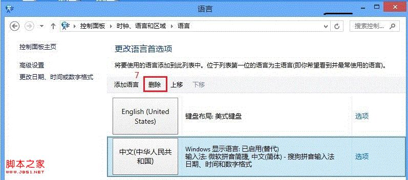 步骤六 此时我们要删除的输入法已经移动到下面,“删除”选项已经可以正常使用,点击删除。
