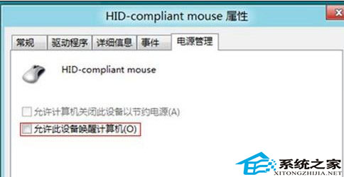 查看到支持从休眠情况下唤醒计算机的设备有一个,鼠标。将其修改为不让其唤醒计算机,Win8下计算机终于也可以休眠了。