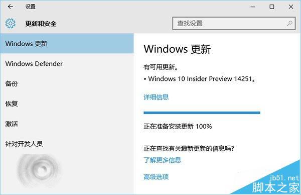 以上就是跳跃鸡翅最近收集整理的关于Win10 RS1桌面预览版14251该怎么更新升级?的全部内容,更多相关Win10内容请搜索靠谱客的其他文章。