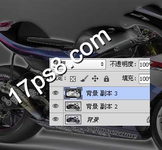 复制背景层,用魔棒工具选出摩托车灰色背景。