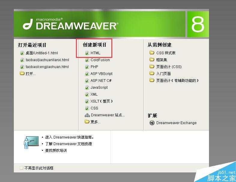 1、打开我们电脑里的dw软件,点击“HTML”,如图所示