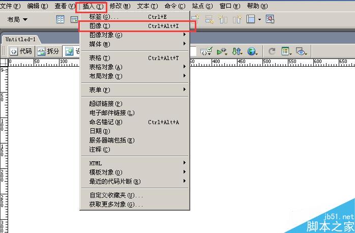 2、我们需要新建一个空白的文档,此时已经建立好一个新的文档,然后点击菜单栏里的“插入—图像”