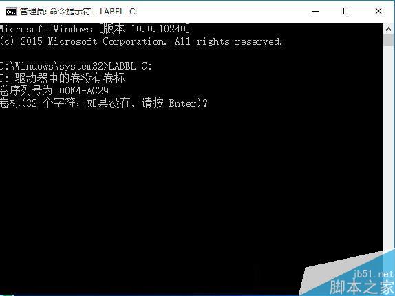 2、在命令提示符中输入: LABEL C: 回车;