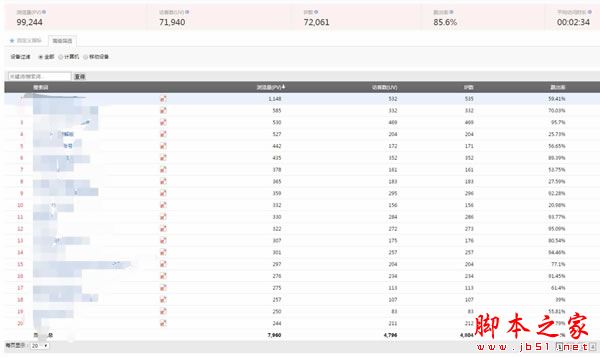这是一个几十万级别的站点关键词来源数据,下图是百度统计关键词列表的第一页: