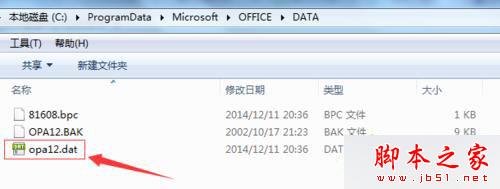 1、首先退出所有Office程序。删除“C:\ProgramData\Microsoft\OFFICE\DATA\opa12.dat”;