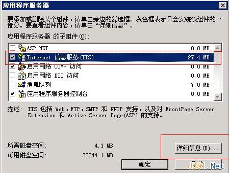 出现上面的图片“选中internet 信息服务(iis)” 点击图片中的“详细信息”