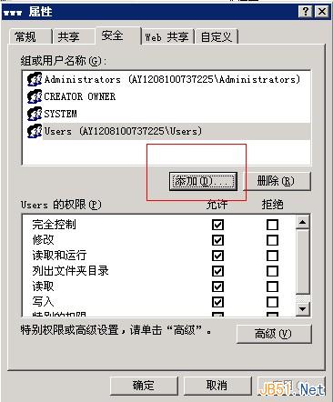 选择“完全控制”然后添加“高级”