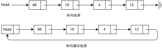 根据结构的不同,链表可以分为单向链表、单向循环链表、双向链表、双向循环链表等。其中,单向链表和单向循环链表的结构如下图所示: