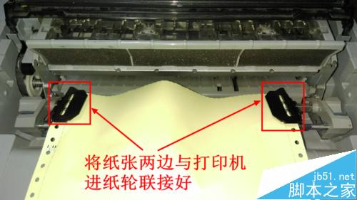 6、按照第4步和第5步的方法将打印纸安装在另一边的进纸轮上。