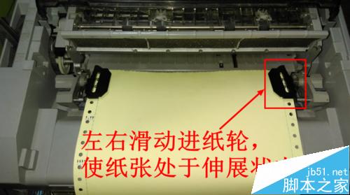 7、左右滑动右边的进纸轮,使打印纸处于伸展状态。