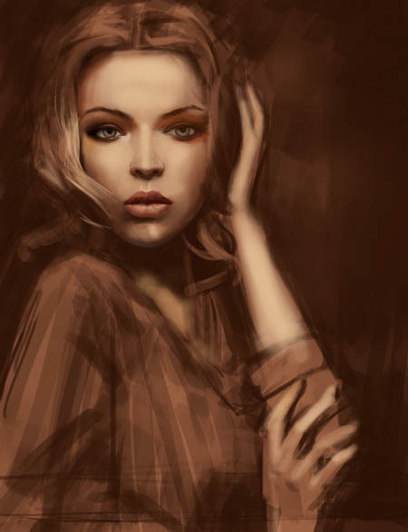 1、起稿,比较豪放的素描稿,可能对工具驾驭能力有限,显得很笨拙。