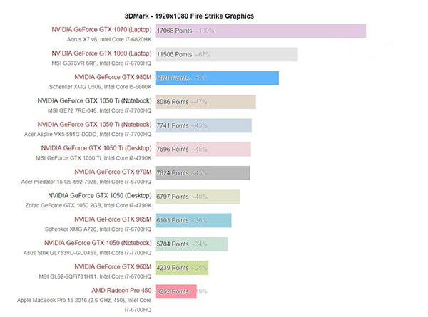 NVIDIA GTX1050/1050Ti移动版性能解析