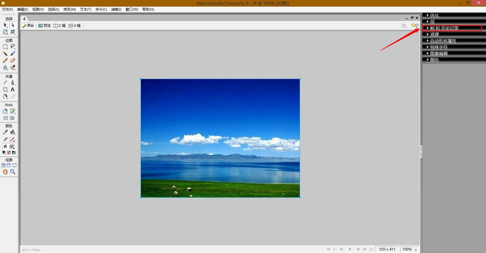1、在Macromedia Fireworks 8打开你想要制作闪图的图片