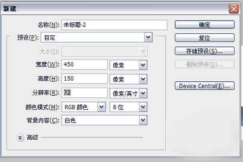 1、新建一个文件,宽度设置得稍微大一点,高度200即可。
