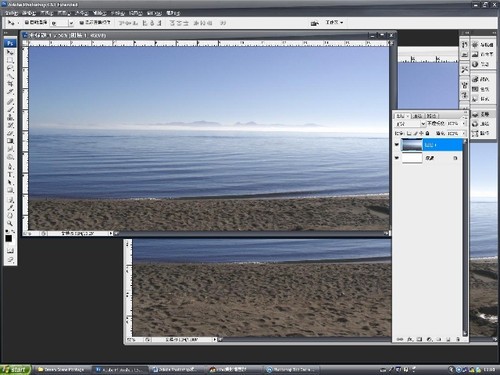 接着打开素材总的Beach.jpg,将其拖拽到新建的背景文件上。