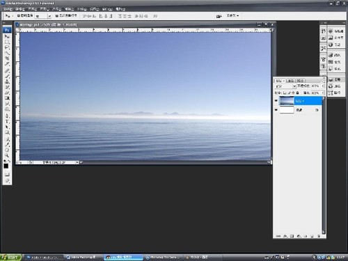 接下来,点击菜单图像-旋转画布-任意角度,在弹出的对话框中,旋转角度所显示的数值,就是标尺工具计算后得到的需要旋转的角度。顺时针和逆时针代表旋转的方向是顺时针还是逆时针。点击确定,画布自动旋转完毕,这时候海天交界的地方就成了水平线了。移动图片并配合菜单编辑-自由变换命令,按住键盘上的Alt+Shift键,适当的放大图片,将旋转完成后出现的画布空白盖上。