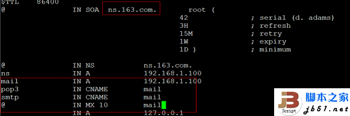 (4)[root@localhost named]# cp -p localhost.zone 163.com.zone 然后编辑此文件