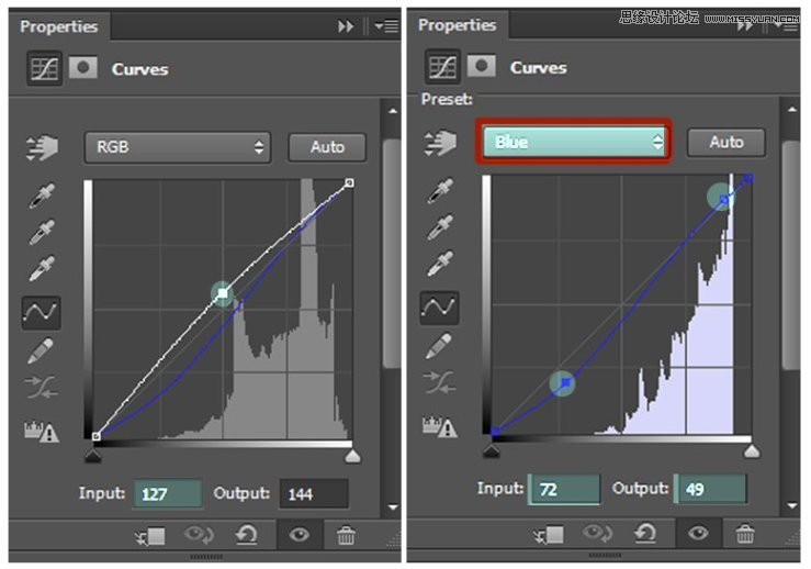 接下来,应用曲线调整图层来进一步增加天空的亮度。点击 图层→新建调整图层→曲线,这一次并不勾选 使用前一图层创建剪贴蒙版,并将相关值设置为下图所示的样子: