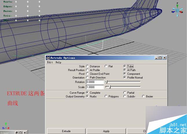 EXTRUDE出来的曲面不一定适合,我们可以通过还未删除的历史记录,并调整两条曲线的CV点来生成我们所想要的曲面。