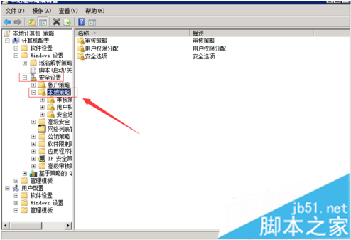2、在“本地组策略编辑器”中依次展开“计算机配置”——“Windows设置”——“安全设置”——“本地策略”——“安全选项”;