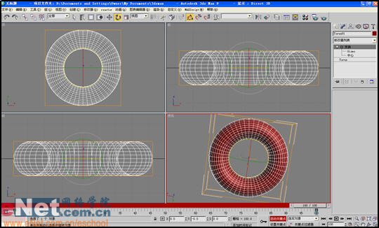 1、启动3dmax9.0,单击“创建”命令面板,点击“几何体”按钮,在下拉列表框中选择“标准基本体”项。单击“圆环”按钮,在视图中绘制一圆环Torus01,并调整其尺寸参数,如图1所示。