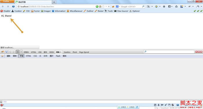 测试一:样式文件在head里,其他的连个脚本文件一个在body的开始部分,一个在body的底部。