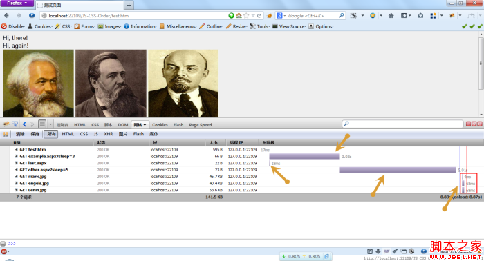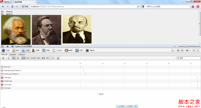 经过在Opera中测试,发现Opera浏览器比较“守规矩”,所有的资源都是按顺序加载的,并没有出现所谓的预先加载,下面是一张总的效果图: