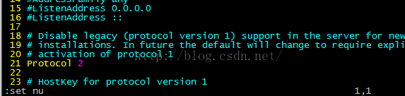 5.通过在vi的命令模式下输入:set nu 命令进行设置行号: