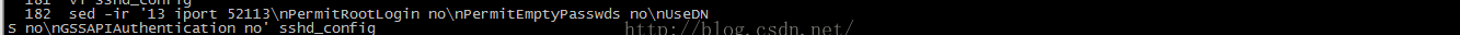b.通过sed命令进行批量修改:sed -ir '13 iport 52113\nPermitRootLogin no\nPermitEmptyPasswds no\nUseDNS no\nGSSAPIAuthentication no' sshd_config