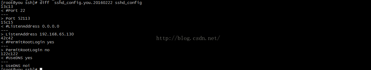 4.修改配置文件前先备份以主机名时间日期的格式进行命名,这里将/etc/ssh/sshd_config备份为/etc/ssh/sshd_config.you.20160222