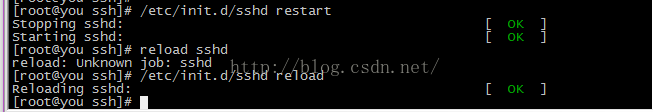 9.通过/etc/init.d/sshd restart和/etc/init.d/sshd reload命令进行重启sshd服务以使得配置生效: