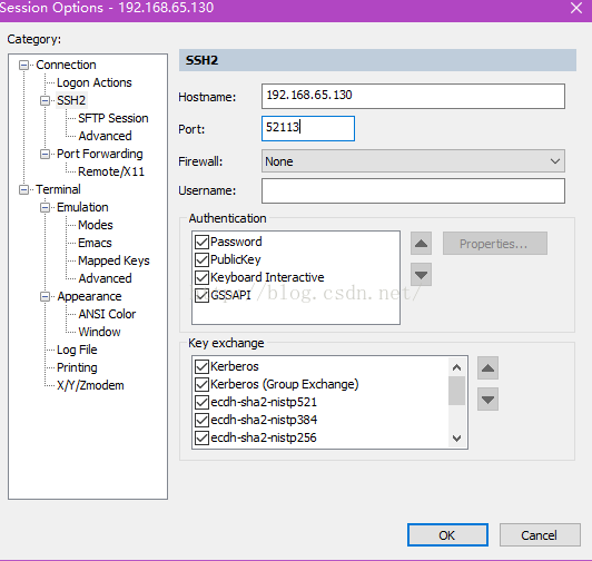 显然因为之前端口号从22改为52113但SecureCRT的快速连接的会话选项中却并未改过来所以不匹配了自然连接不上了: