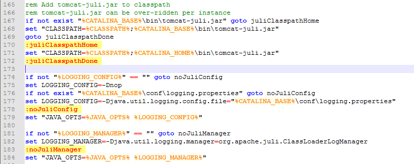 1. 在 CATALINA_BASE 和 CATALINA_BASE 目录下查找 setenv.bat 文件并执行,找不到则不执行。