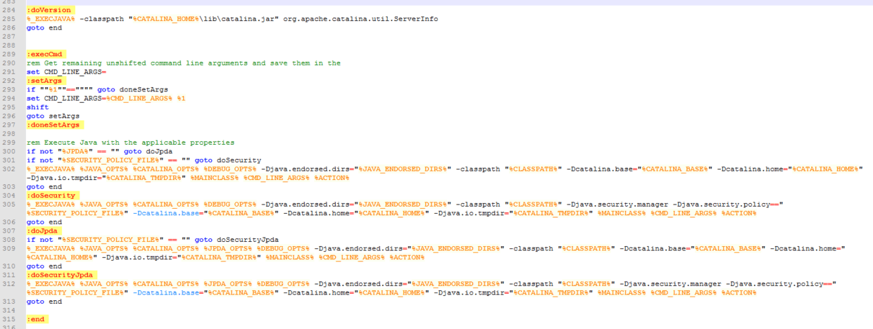 - 如果在CATALINA_HOME\bin目录下找不到catalina.bat,则结束(这里基本不会出现这种情况的,除非catalina.bat 没在tomcat的bin目录下)