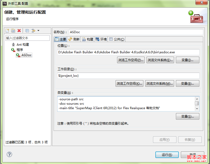 位置:选择你安装目录下asDoc.exe所在的路径,我的是D:\Adobe Flash Builder 4.6\Adobe Flash Builder 4.6\sdks\4.6.0\bin\asdoc.exe