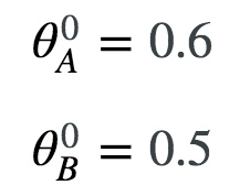 new_theta_A = counts['A']['H']/(counts['A']['H'] + counts['A']['T']) new_theta_B = counts['B']['H']/(counts['B']['H'] + counts['B']['T'])