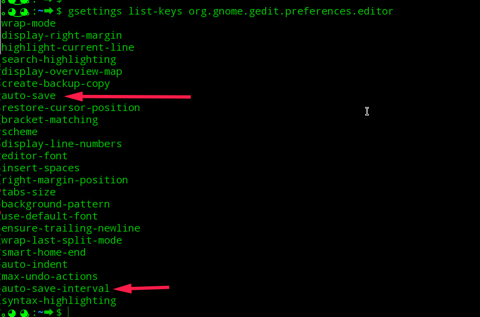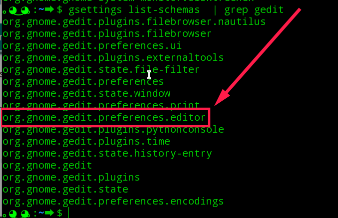 gsettings list-keys org.gnome.gedit.preferences.editor