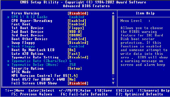 “BIOS FEATURES SETUP”(BIOS功能设置)