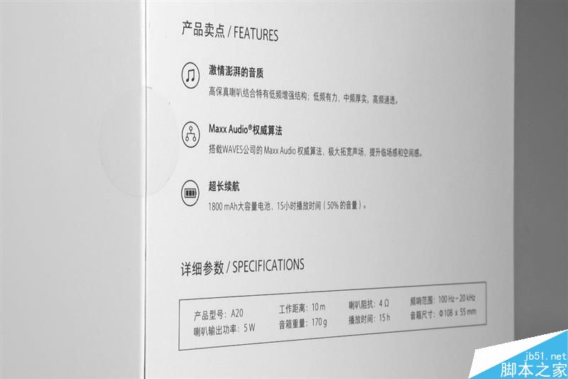 背面印有产品特点说明和基本参数。