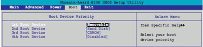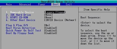 4、可以设置的包括[Removable]、[Hard Disk]、[CDROM]、[Legancy LAN]等等。按照前面的方式设置好启动顺序。