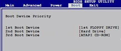 下面这个是一台P4电脑的BIOS设置,一些早期的电脑会有这样的设置界面。Boot菜单显示的就是启动顺序了,排列在前面的就会优先启动。按键盘的+、-号按键把CDROM调整到硬盘(Hard disk)的上面(加号向上移动一行,减号向下移动一行)。