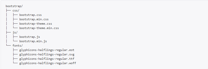 这是最基本的Bootstrap组织形式:未压缩版的文件可以在任意web项目中直接使用。我们提供了压缩(bootstrap.min.*)与未压缩 (bootstrap.*)的CSS和JS文件。字体图标文件来自于Glyphicons。