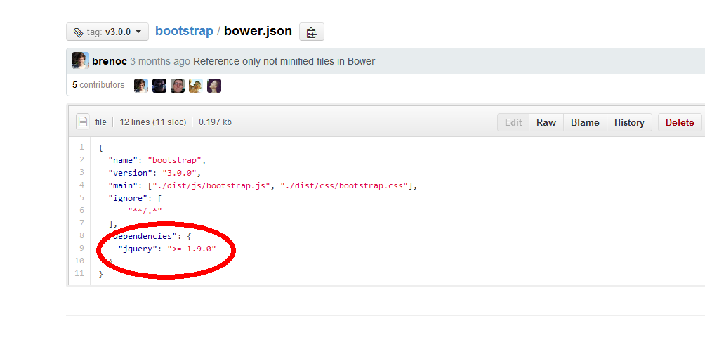 bower.json中列出了Bootstrap所支持的jQuery版本。