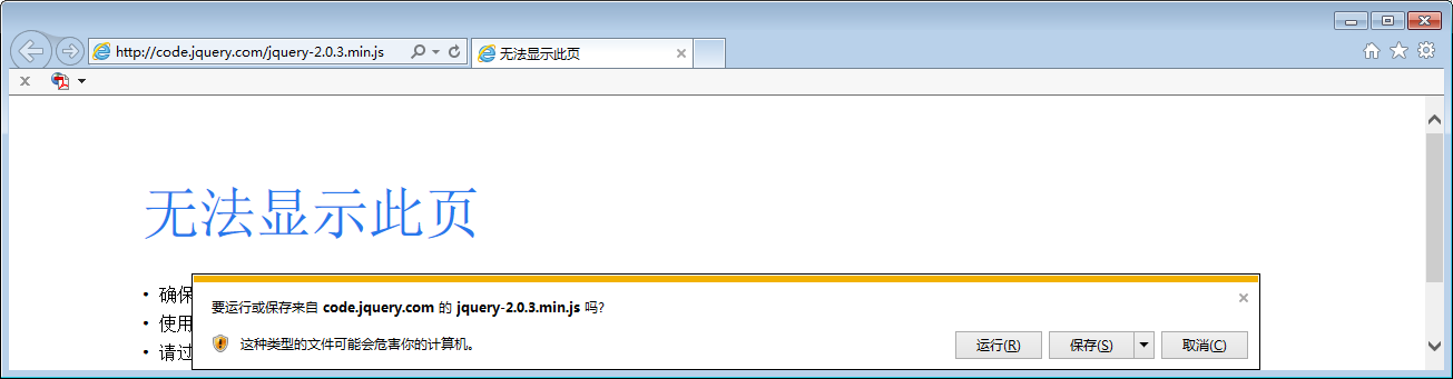 可以通过IE直接访问http://code.jquery.com/jquery-2.0.3.min.js