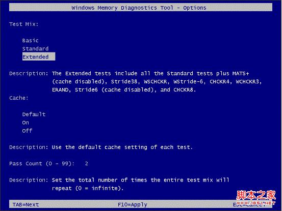 默认情况下,诊断工具会对您所选择的项目内容执行2次(两个轮回),但是您完全可以手动修改这个测试轮回的次数,范围是最大99次!使用TAB键定位到修改次数的地方键入需要的轮回次数。