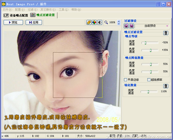 3、用磨皮插件磨皮或用你擅长的工具磨皮。八仙过海各显神通,具体磨皮方法我就不一一说了。网友也可以参考之前的教程。
