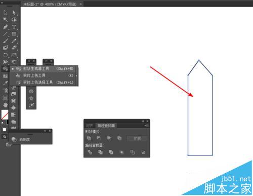 3、选择形状生成器工具,把直线和矩形图形生成一个图形,如图所示