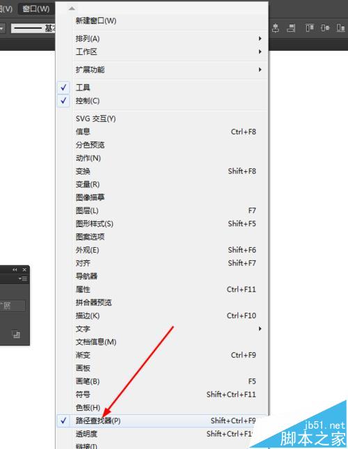 4、再选择直线工具,画一条直线,选中直线和图形到窗口—路径查找器—点击分割,如图所示