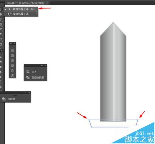 6、选择矩形工具,画一个矩形图形,再选择直接选择工具,移动矩形两个锚点的位置,并添加渐变颜色,如图所示