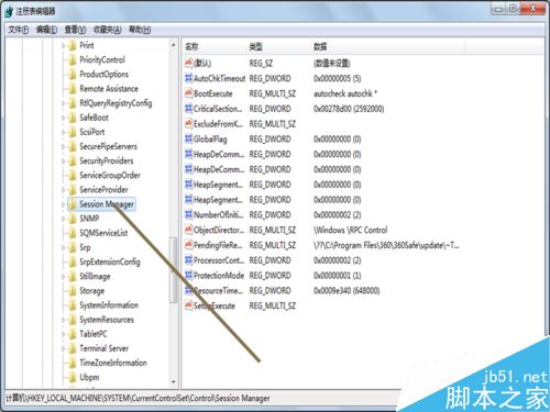 4、在出现的子菜单中选择Control,接着选择Session Manager选项,在右边出现其他选项。